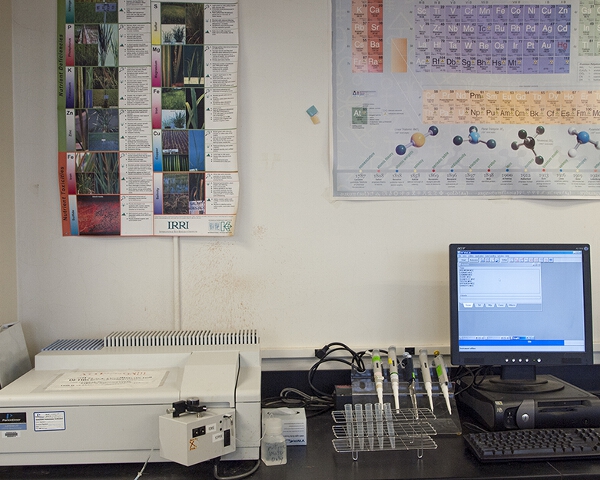 The spectrophotometer is used for colormetric assays for plant tissue and soil nutrient content.