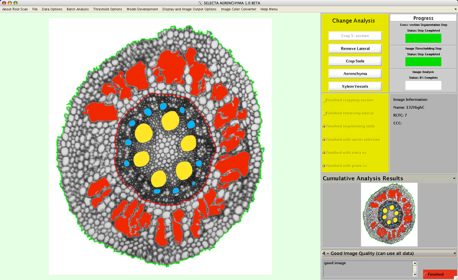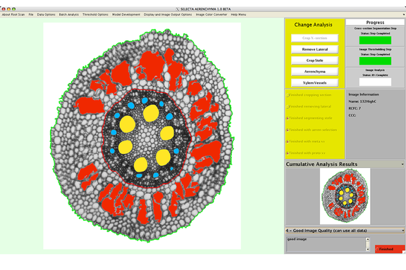 RootScan is an imaging software designed to codify anatomical features of root cross sections from microscope digital images.